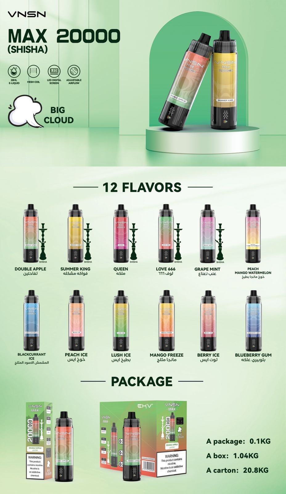 VNSN MAX 20000 Puffs Rechargeable Disposable Vape in Dubai