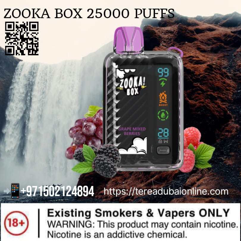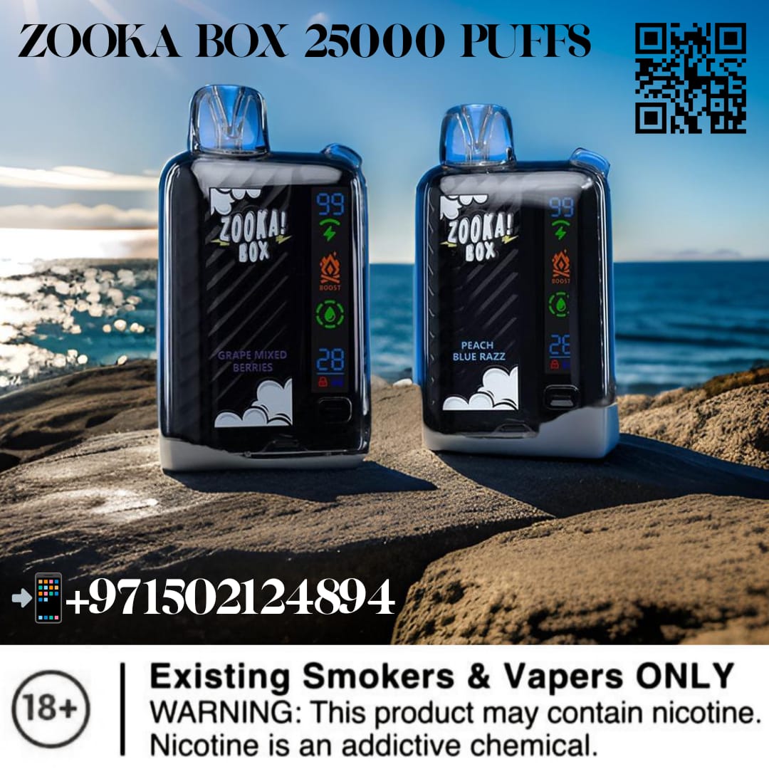 The ZOOKA BOX stands out with its impressive 25,000 puff capacity, dual mesh coil technology for superior flavor, and a rechargeable battery, offering a premium vaping experience.